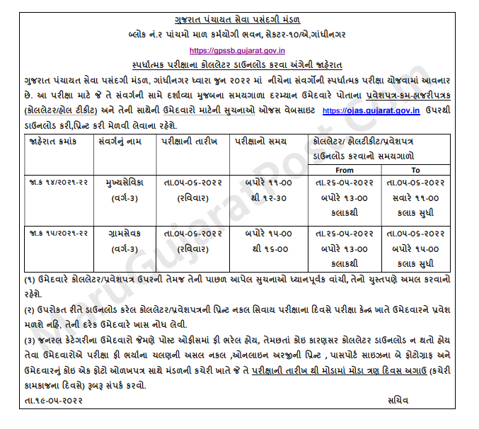 GPSSB Gram Sevak Call Letter 2022 Download : Gujarat Panchayat Service Selection Board ( GPSSB ) Published Call Letter For Gram Sevak Examination2022, Gram Sevak Exam On 05 June 2022, Here Download Gram Sevak Call Letter Below Important Link.