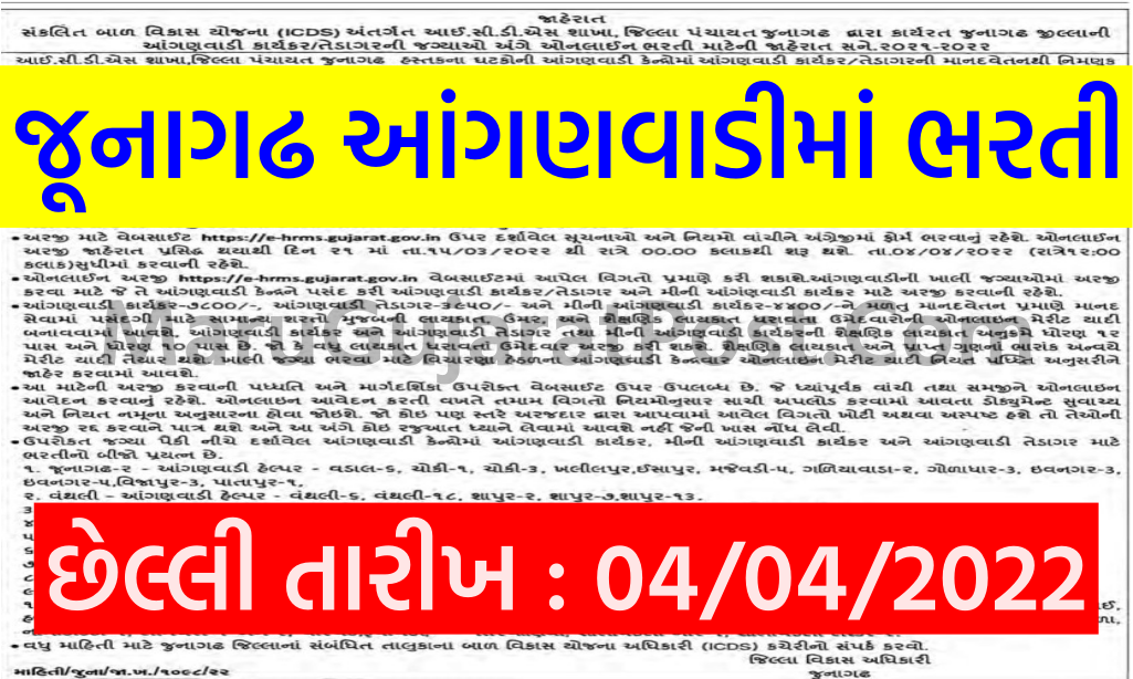 | Last Date Junagadh Anganwadi Job | 04/04/2022 |