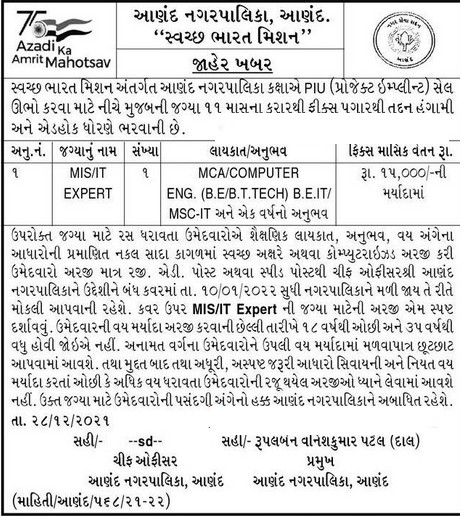 Anand Nagarpalika Vacancy 2022