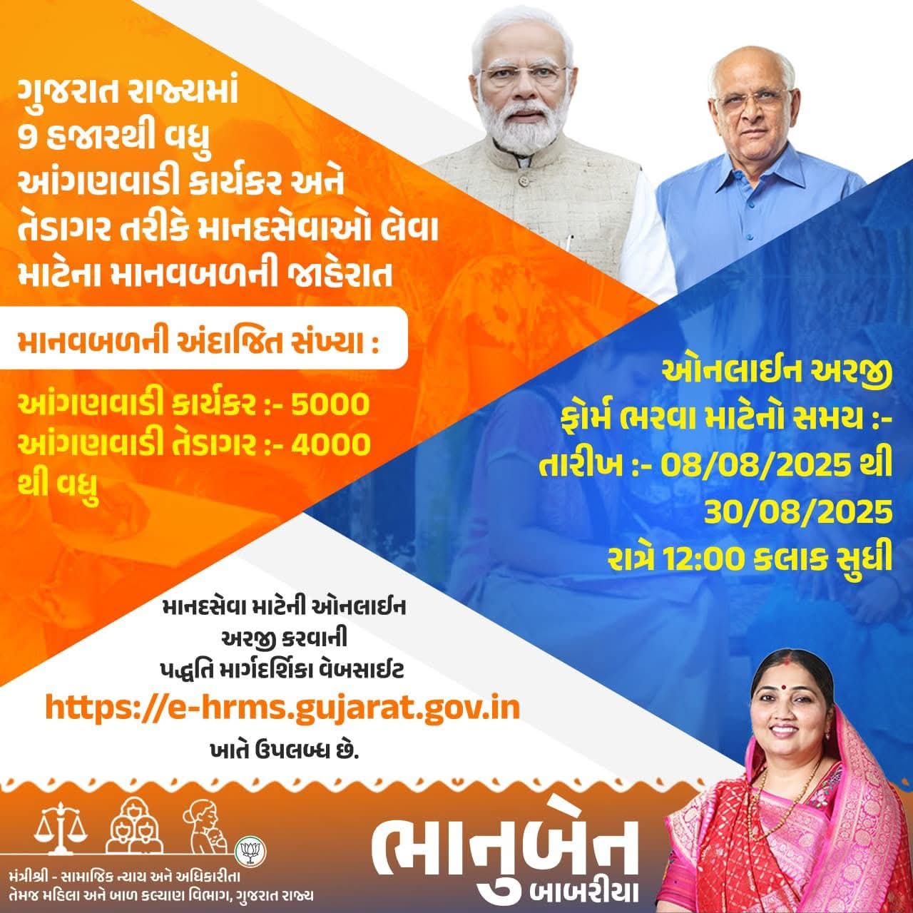 Anganwadi Bharti 2025 Gujarat | Apply @e-hrms.gujarat.gov.in
