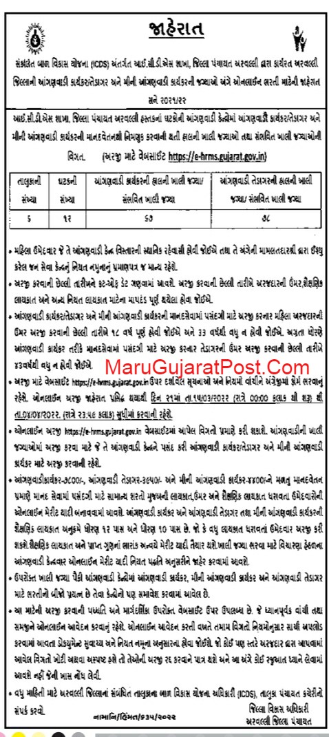 The Highlights of Aravalli Anganwadi Bharti 2022