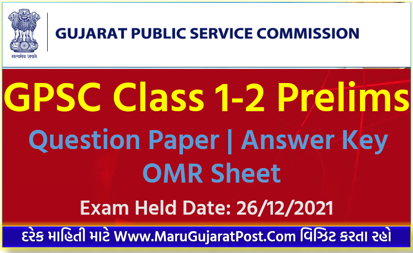GPSC Class 1-2 Prelims Question Paper | Answer Key | OMR Sheet : Gujarat Public Service Commission Held Class-1 & Class-2 (Adv. No. GPSC/202122/30 ) On 26th December 2021. GPSC Conduct Gujarat Administrative Service, Class-1, Gujarat Civil Services, Class-1 & Class-2 & Gujarat Municipal Chief Officer Service, Class-2 Examination 2021