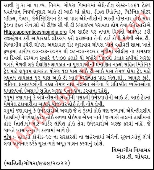 GSRTC Godhra Recruitment 2022 : Gujarat Road Transport Corporation (GSRTC) has Recently Invites Application For the Apprentice Post Recruitment 2022 Notification, Eligible Candidates Apply Before Last Date, for More Detail Read Article Or Official Advertisement.