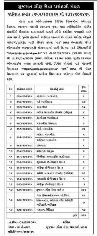 GSSSB Recruitment 2025 | GSSSB Bharti 2025 | Gujarat Gaun Seva Pasandgi Mandal (GSSSB) Published Vacancy For Various Posts 2025, For more information related to Educational Qualification, Age Criteria, Selection Mode, Important Date and other Eligibility process please read the below article carefully. Also must read the official advertisement in detail before applying.