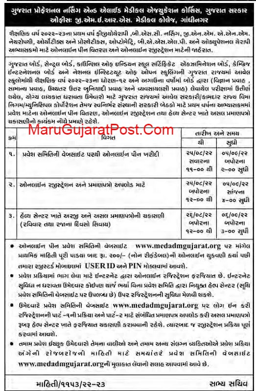 Gujarat Bsc Nursing Official Website Is https://www.medadmgujarat.org