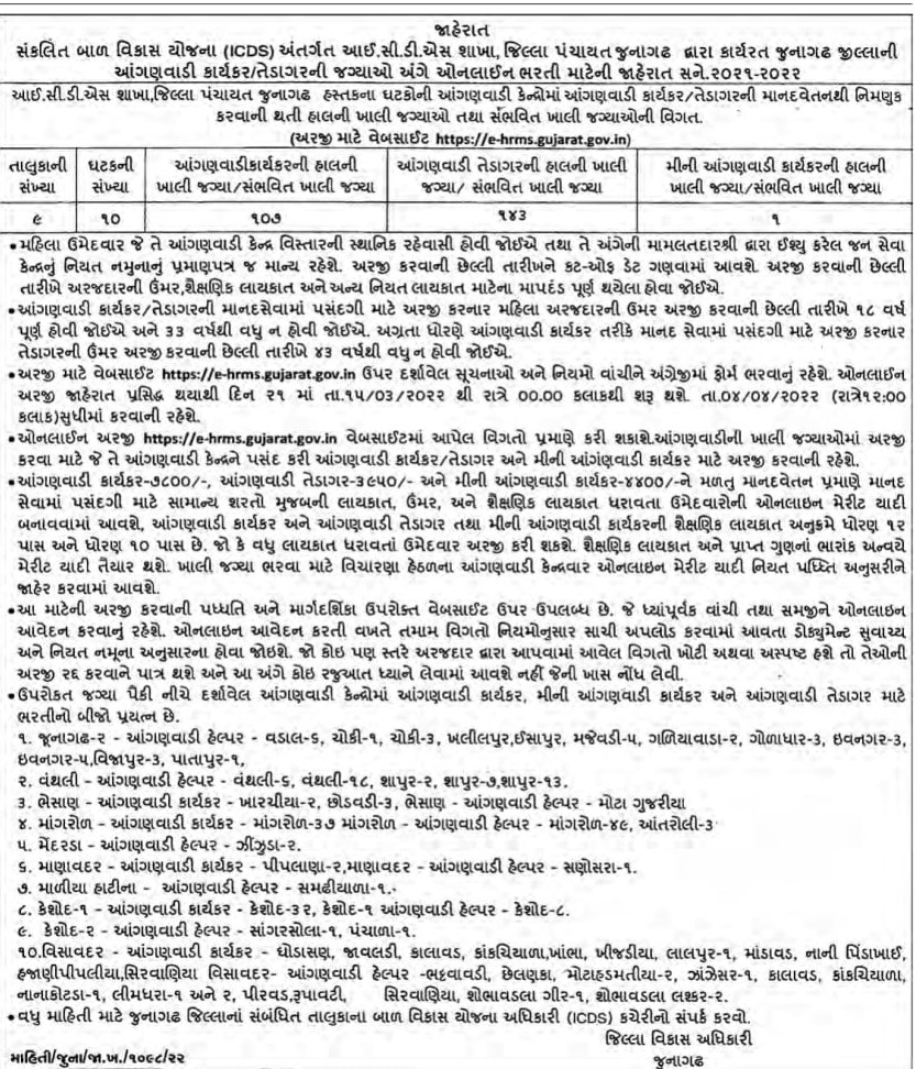 | Junagadh Anganwadi Recruitment 2022 Official Notification | Click Here | URBAN |