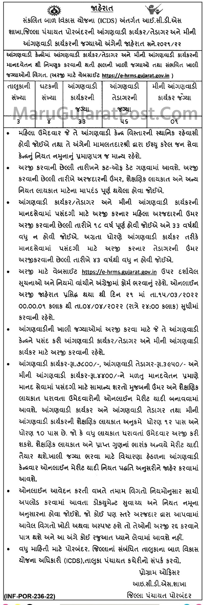 | Last Date Porbandar Anganwadi Job | 04/04/2022 |