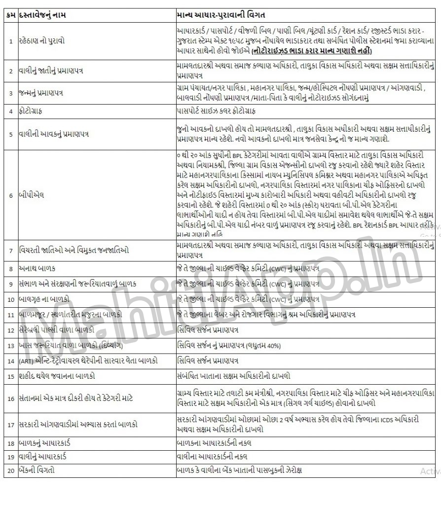 • BPL The guardian falling in the BPL category from 1 to 8 marks will have to submit the example of Taluka Development Officer or Director, District Rural Development Agency for the rural area,