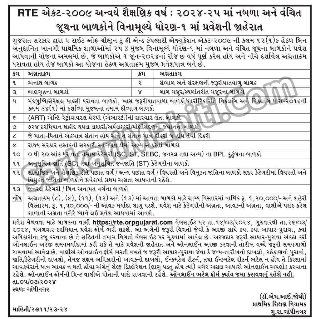 | rte gujarat 2024-25 start date | 14/03/2024 |