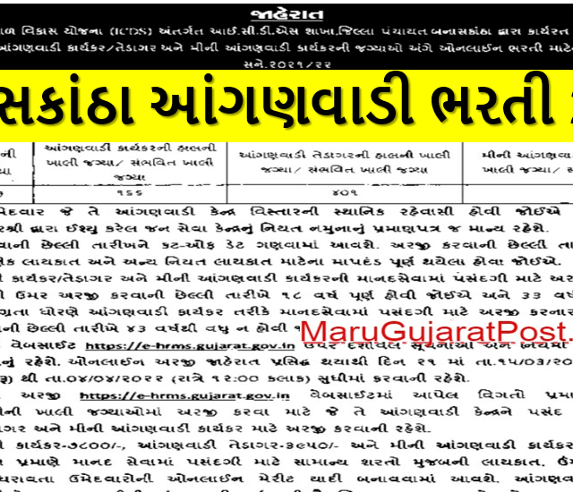 Banaskantha Anganwadi Bharti 2022 @e-hrms.gujarat.gov.in