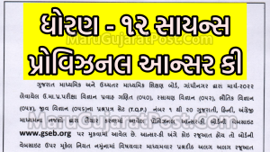 GSEB STD 12 Science Provisional Answer Key 2022, Download @gsebeservice.com