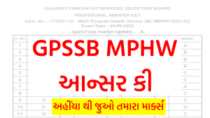 GPSSB MPHW Answer Key 2022, Check Your Marks @gpssb.gujarat.gov.in