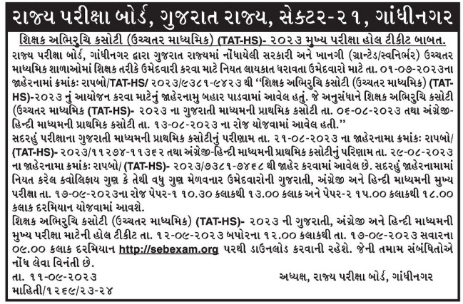 TAT Higher Secondary Mains Exam Call Letter Download Direct Link : The State Examination Board (SEB) published Call letter for Teacher Aptitude Test (Higher Secondary) (TAT-HS) Mains Exam 2023.Here Download SEB TAT HS Mains Exam Call Letter 2023 Below Important Link.