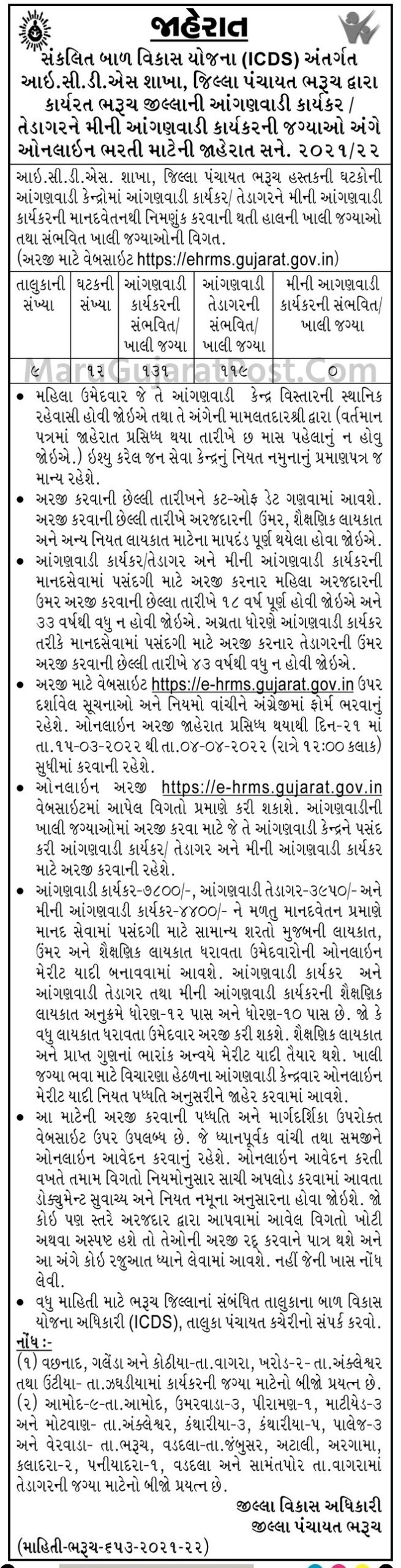 | Dabhoi Anganwadi Bharti 2022 | Click Here |
